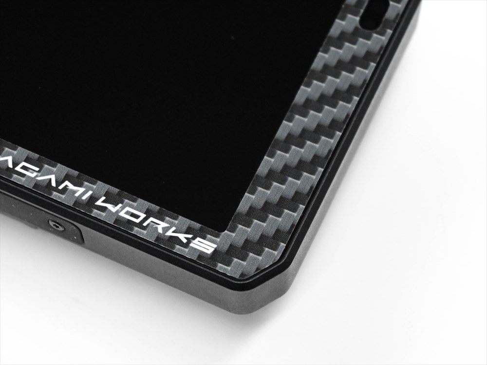 カーボン風のテクスチャを印刷で再現した、シンプルでレーシーなグラフィック。